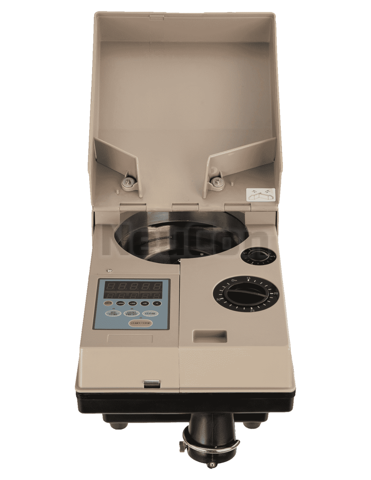 Монетите се броят автоматично, докато машината разпознава номинала чрез двойни програмируеми параметри за диаметър и дебелина. Това позволява прецизно разделяне по номинал, намалявайки нуждата от предварителна ръчна подготовка. При откриване на монети с различни размери, които не отговарят на зададените параметри, те се отделят в страничен реджект джоб, което опростява процеса и повишава ефективността.