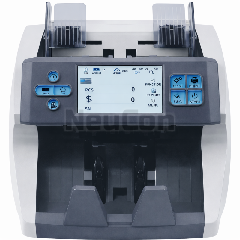 NEUCON SH-06C поддържа автоматичен режим на разпознаване, което позволява броене на различни валути без ръчна смяна на настройки. Управлението е интуитивно, а интерфейсът е съобразен с реалните нужди на касиери и оператори при интензивна работа.
