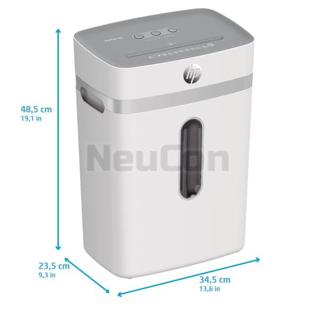 Компактният HP OneShred 12CC нарязва вашите чувствителни документи на изрезки с размери 4 mm x 35 mm. Надеждният шредер за хартия впечатлява с високо ниво на сигурност P-4 и по този начин отговаря на изискванията на GDPR. Със скорост на рязане от 1,8 метра в минута, този модерен шредер за документи бързо унищожава до 12 листа наведнъж. Ако случайно сте подали повече от 12 листа, хартията се подава автоматично обратно благодарение на функцията за автоматично връщане, която противодейства на засядането на хартия. Няма нужда да премахвате телчета и кламери преди раздробяване, тъй като те , както и кредитните карти не създават на HP OneShred 12CC никакви проблеми.