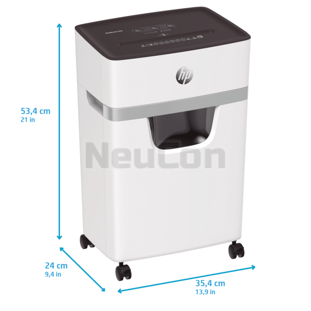 HP OneShred 15CC е съвременен и практичен шредер, създаден за малки офиси, като същевременно запазва компактни размери, подходящи дори за поставяне върху бюро. Устройството обработва до 15 листа формат A4 едновременно и осигурява високо ниво на сигурност P-4, покриващо изискванията за защита на личните данни съгласно GDPR. Документите се нарязват на фини частици с размер 4 × 35 мм.